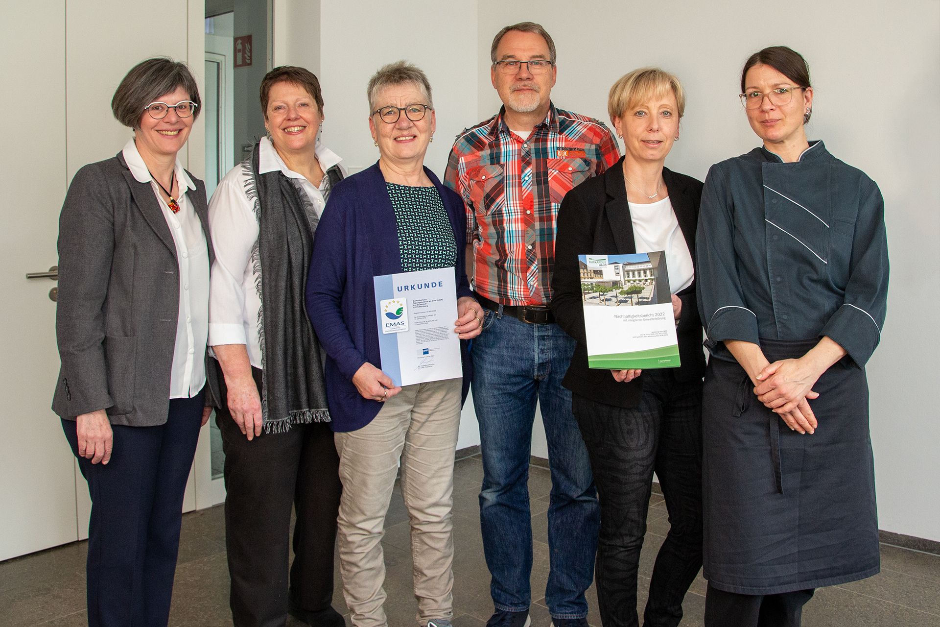 Nun konnte das EMAS-Team die Zertifizierungszurkunde und den frisch gedruckten Nachhaltigkeitsbericht präsentieren.