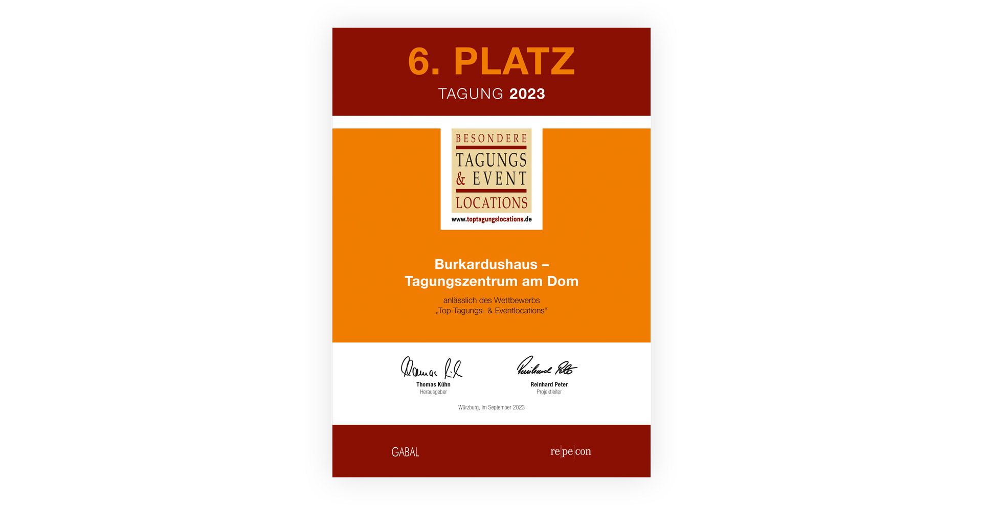 Jubel im Burkardushaus: Bei der diesjährigen Wahl der Top-Tagungs- und Eventlocations wurde das Burkardushaus zum dritten Mal in Folge auf Platz 6 gewählt.